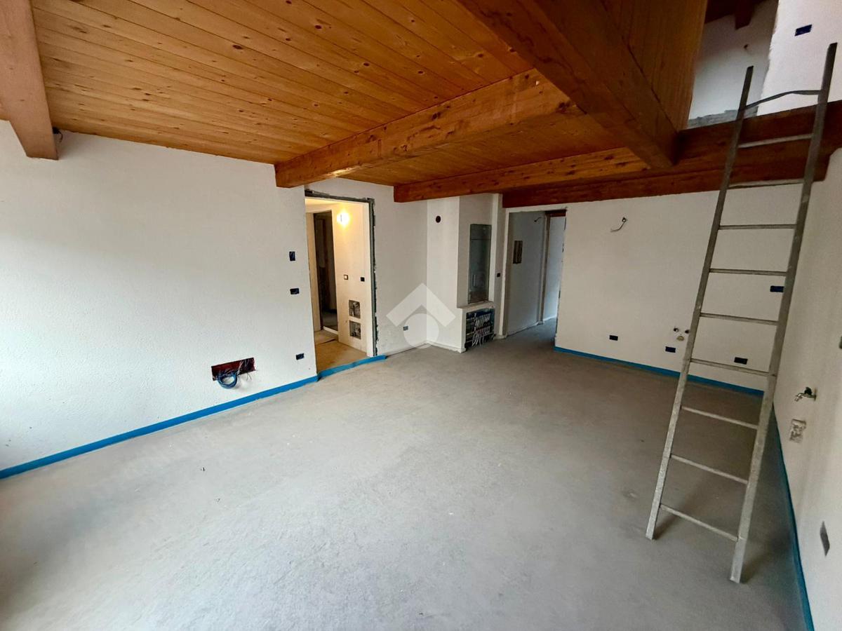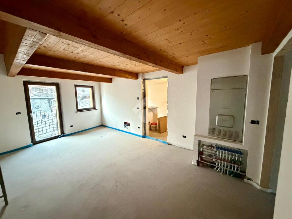 Nel pieno centro storico di Nus, in via Risorgimento, l'immobile è in un contesto di cinque unità in fase di ristrutturazione. L'alloggio è al secondo e ultimo piano disposto su due livelli. Il soggiorno è unito alla cucina. La zona notte ospita una camera matrimoniale con balcone e servizio sullo stesso piano della zona giorno. Tramite una scala interna si accede al piano superiore il quale ospita una camera e un bagno. Completa l'unità la cantina. Il riscaldamento è autonomo a metano. Le spese condominiali sono assenti. La classe energetica sarà in Classe B. Possibilità di acquistare il posto auto o il box auto.